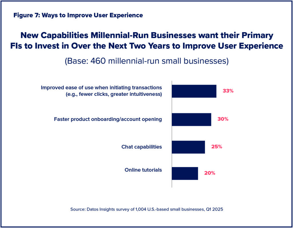 The banking landscape is shifting, and small business expectations are changing right along with it. Young entrepreneurs are looking for faster, simpler, and more intuitive digital experiences from their financial institutions. In fact, 37% of millennial-led small businesses would consider switching to a provider that offers a more modern, tech-driven experience, according to the Datos Insights survey.