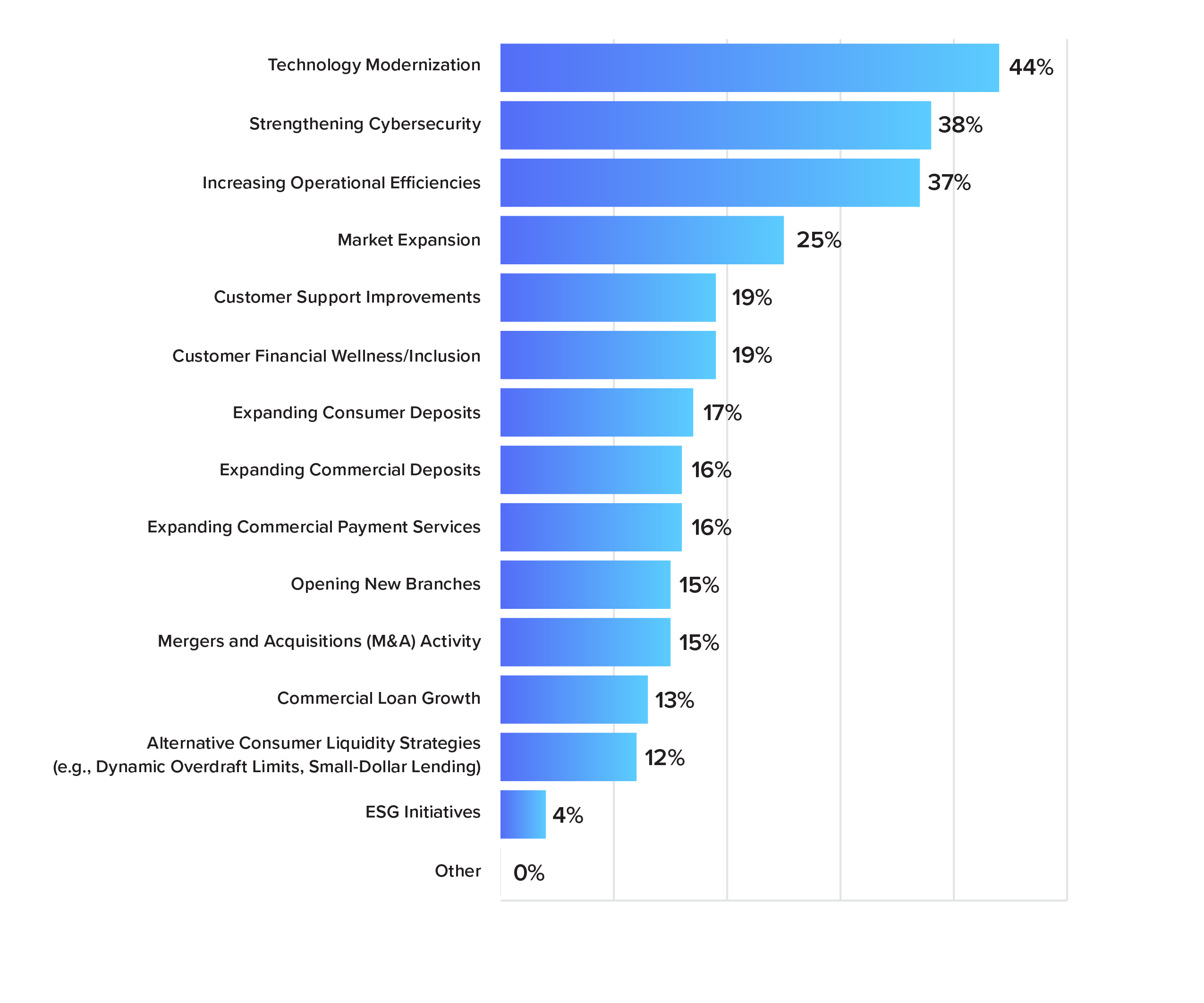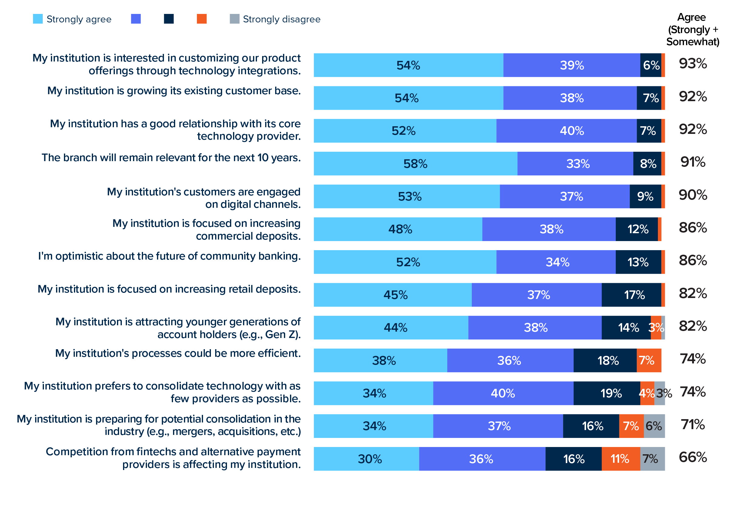 CSI’s annual Banking Priorities survey asks bankers about the most pressing issues, trends and strategies in the financial industry this year. Check out the detailed survey results in the charts below.